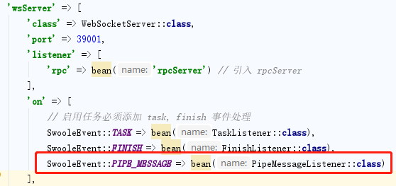 1.在app/beans.php 文件里的server一项,监听 onPipeMessage 事件。