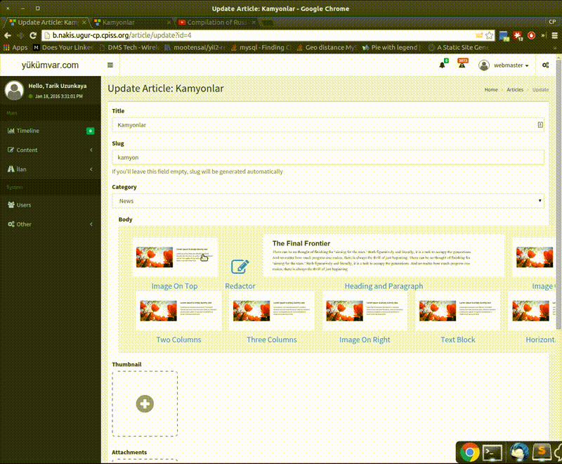 yii2 optimized content builder upon Sir Trevor wysiwyg custom components with Mustache, jQuery Cropper and others.