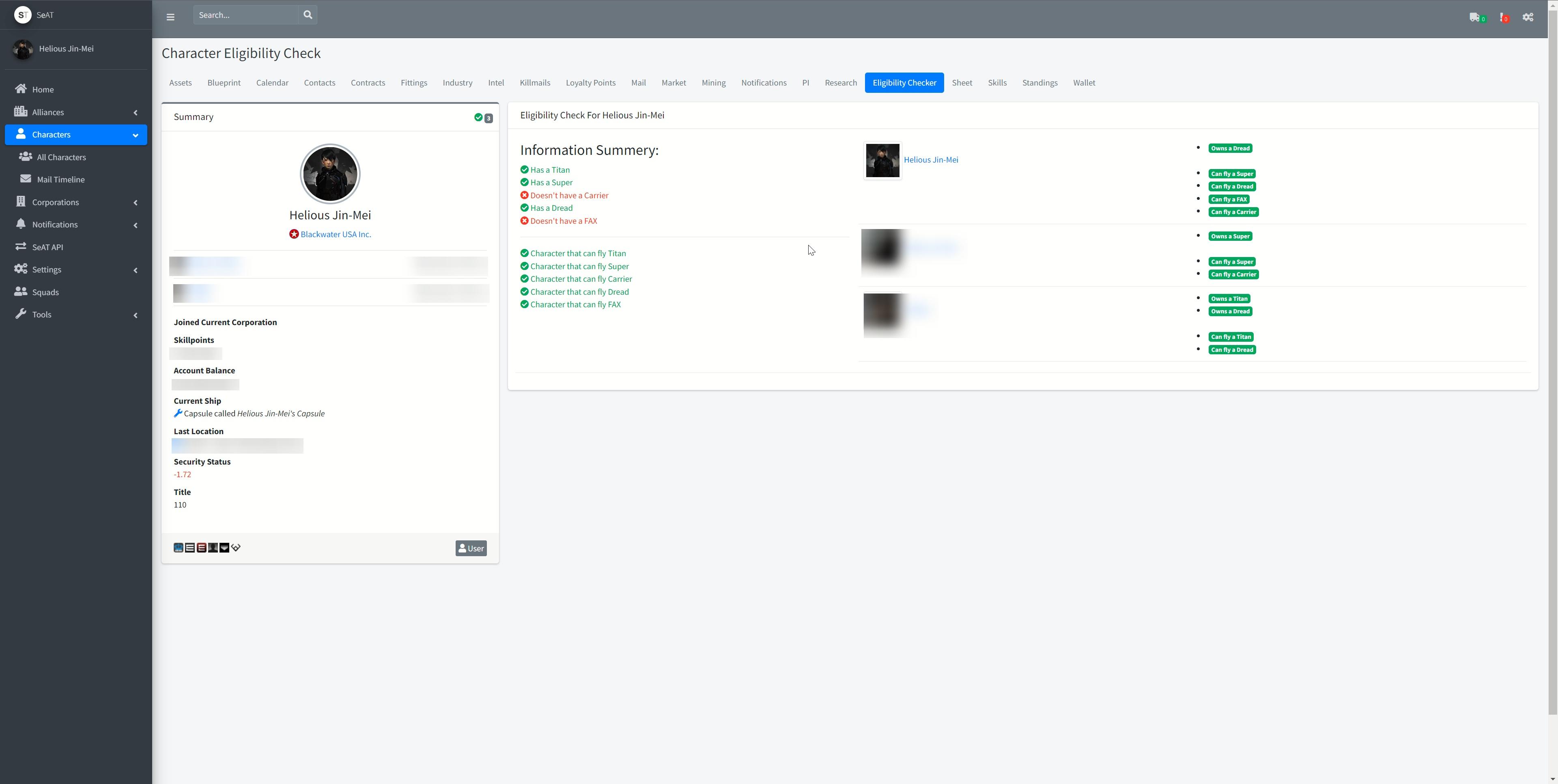 Eligibility Checker plugin for SeAT that allows recruiters to check if main and all associated characters own/can fly a super, fax, titan, carrier or dread.
