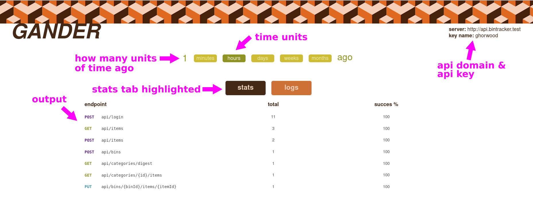 The Gander client gets statistics and logs about your api by calling it's own api endoints. These endpoints require api keys to access.