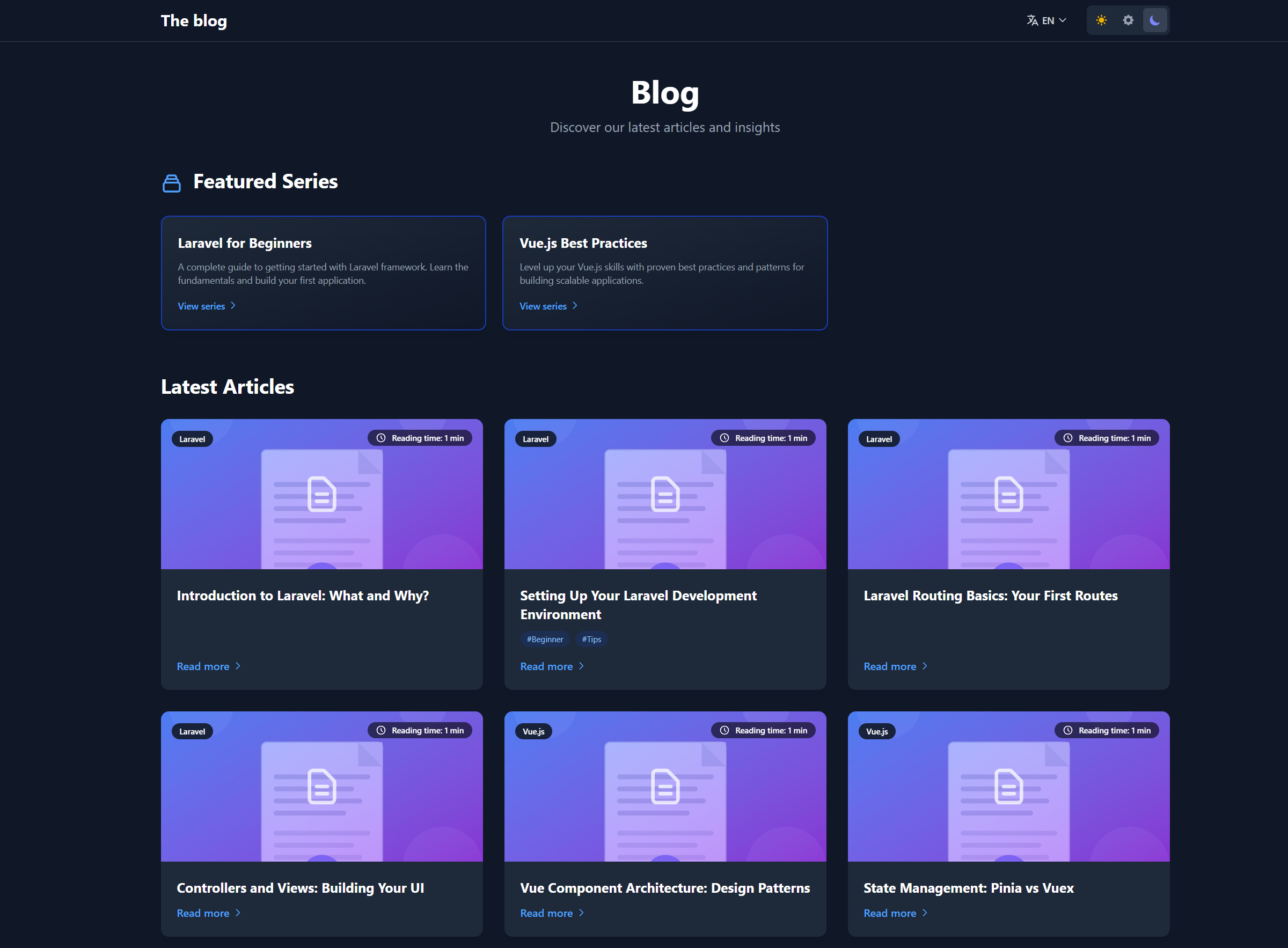 To quickly visualize blog series and multilingual features, run the demo seeder: