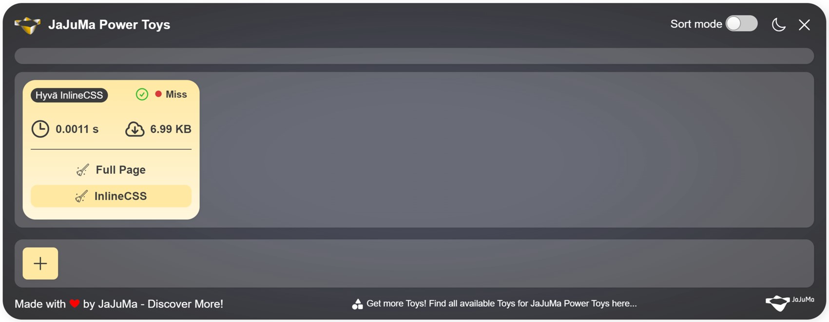Hyvä Inline CSS Power Toy for Magento 2 by JaJuMa is a dashboard toy showing the inline CSS & cache status as well as processing times in your Magento store. Same as the Hyvä Inline CSS debug tool, but even without enabling the debug mode.