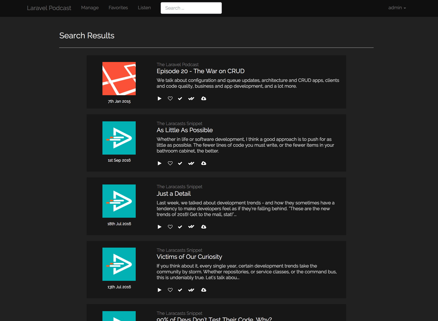 Laravel Podcast Manager is a complete podcast manager package for Laravel 5.3+ that enables you to manage RSS feeds for your favorite podcasts and listen to the episodes in a seamless UI.