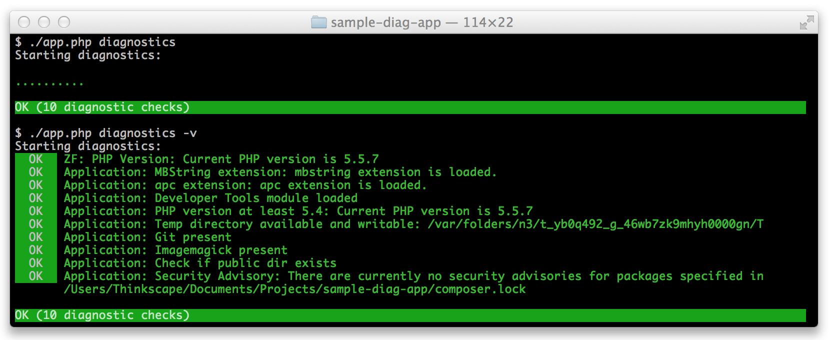 A set of components for performing diagnostic tests in PHP applications
