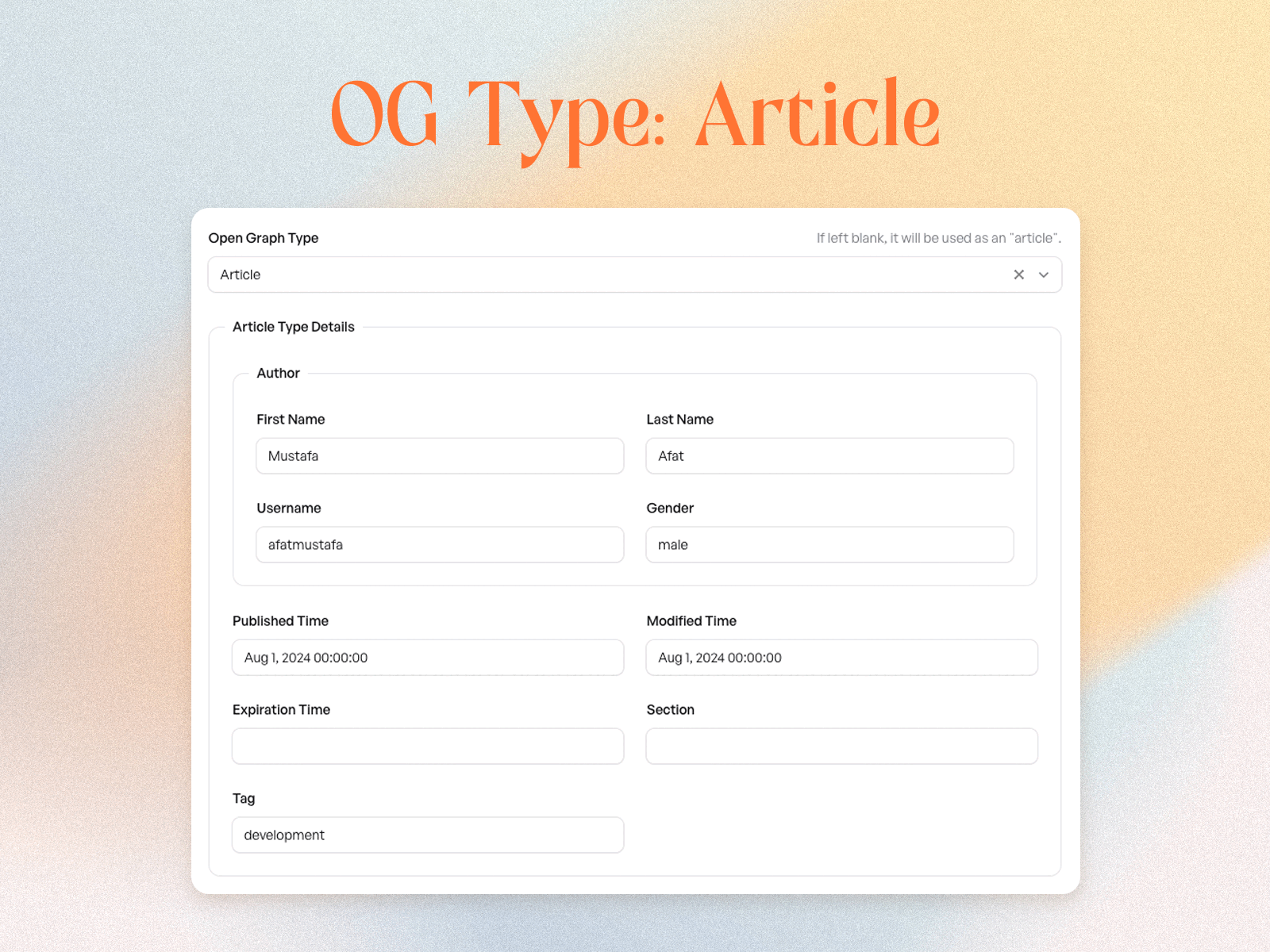 - Multiple open graph types: Supports 3 open graph types: article, book, profile.