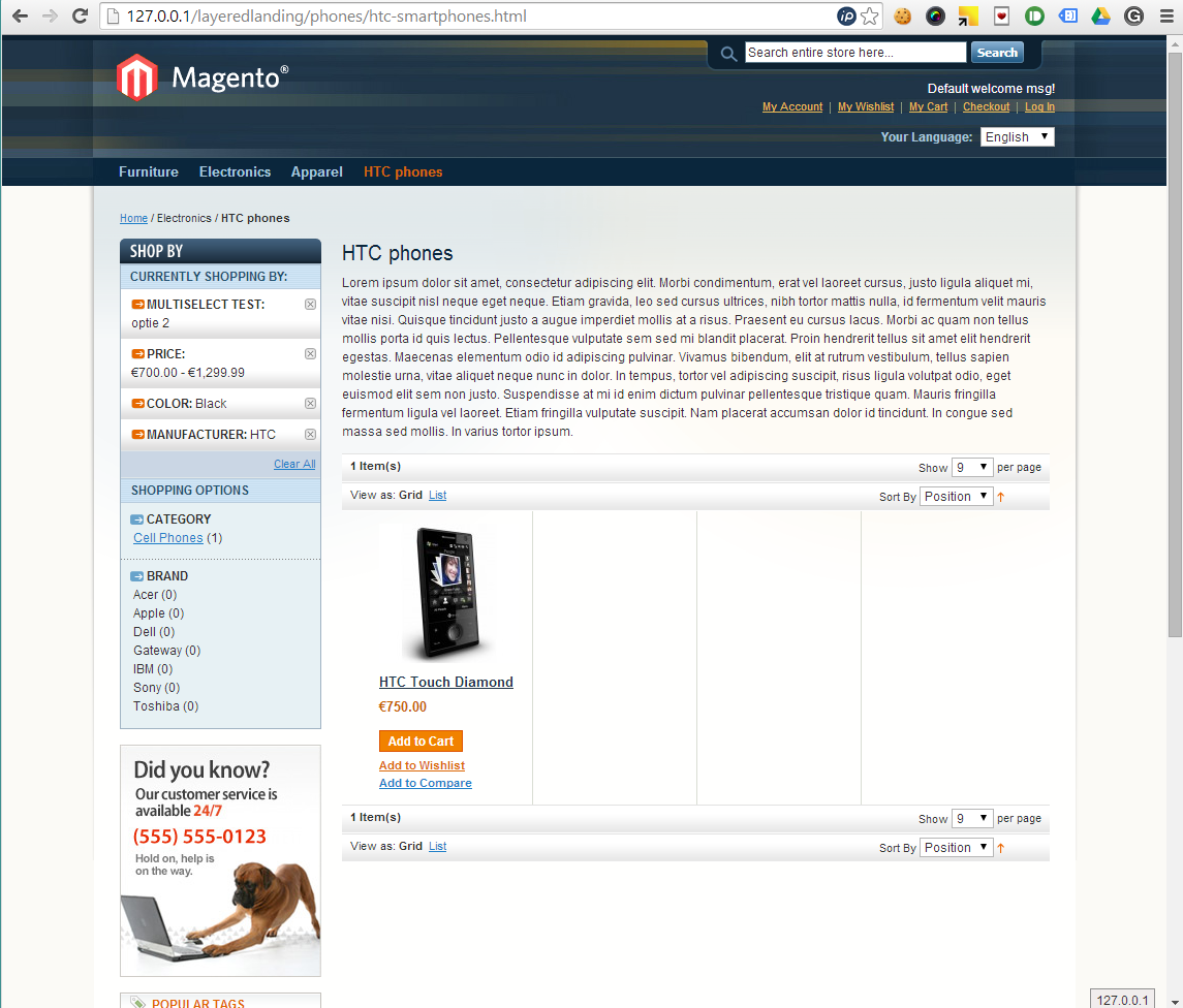Extension allows for custom meta data, page title and description replacing the category data, design updates and adding landingpages to the Magento topmenu