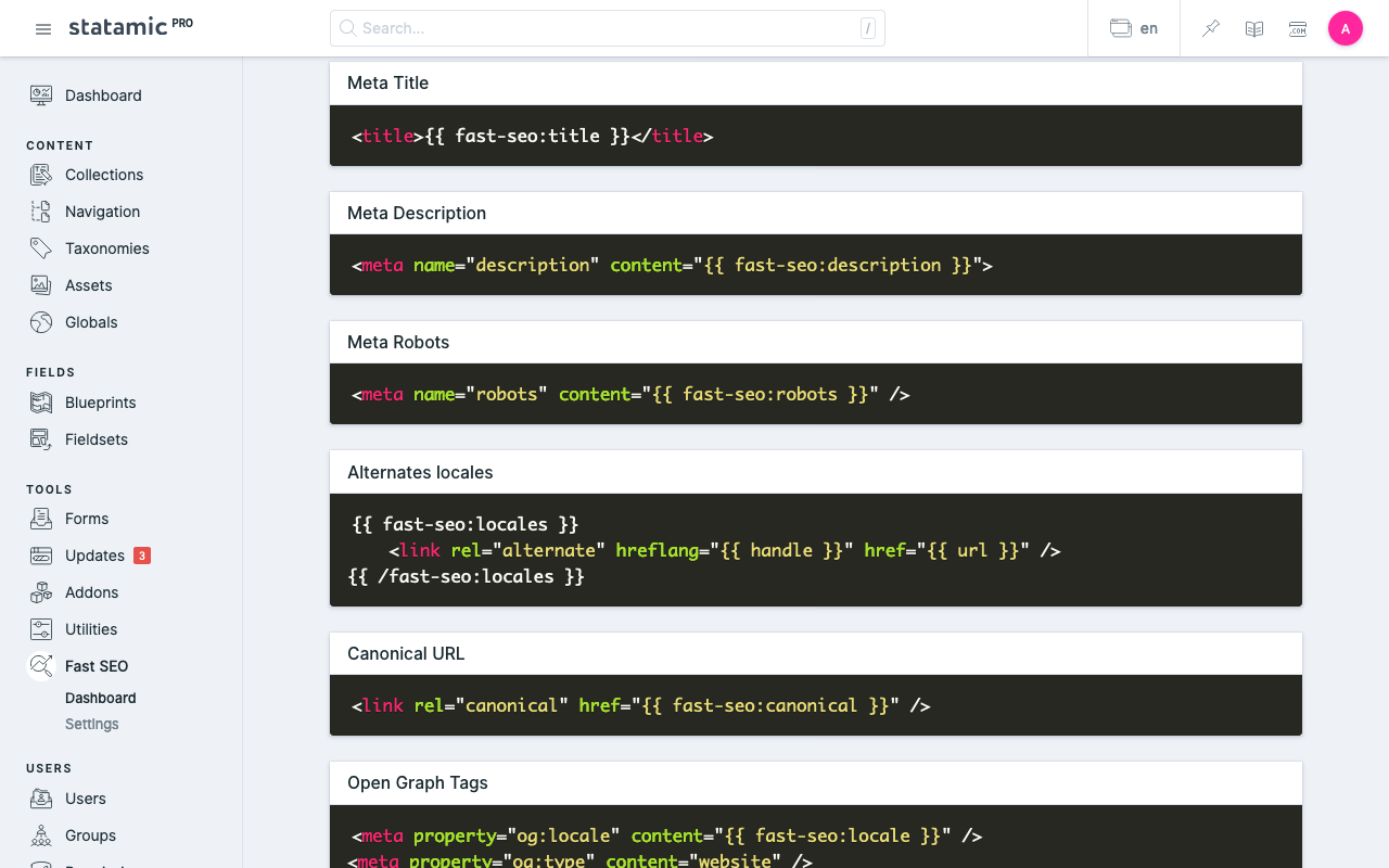 Statamic addon to implement SEO tags. Fast.