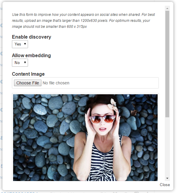 hypeDiscovery allows users to create public description of otherwise inaccessible content items (e.g. if your site is in a walled garden mode). The plugin implements a system of permalinks that are accessible by remote services, such as Facebook, Twitter, Google Plus, LinkedIn, Pinterest etc.