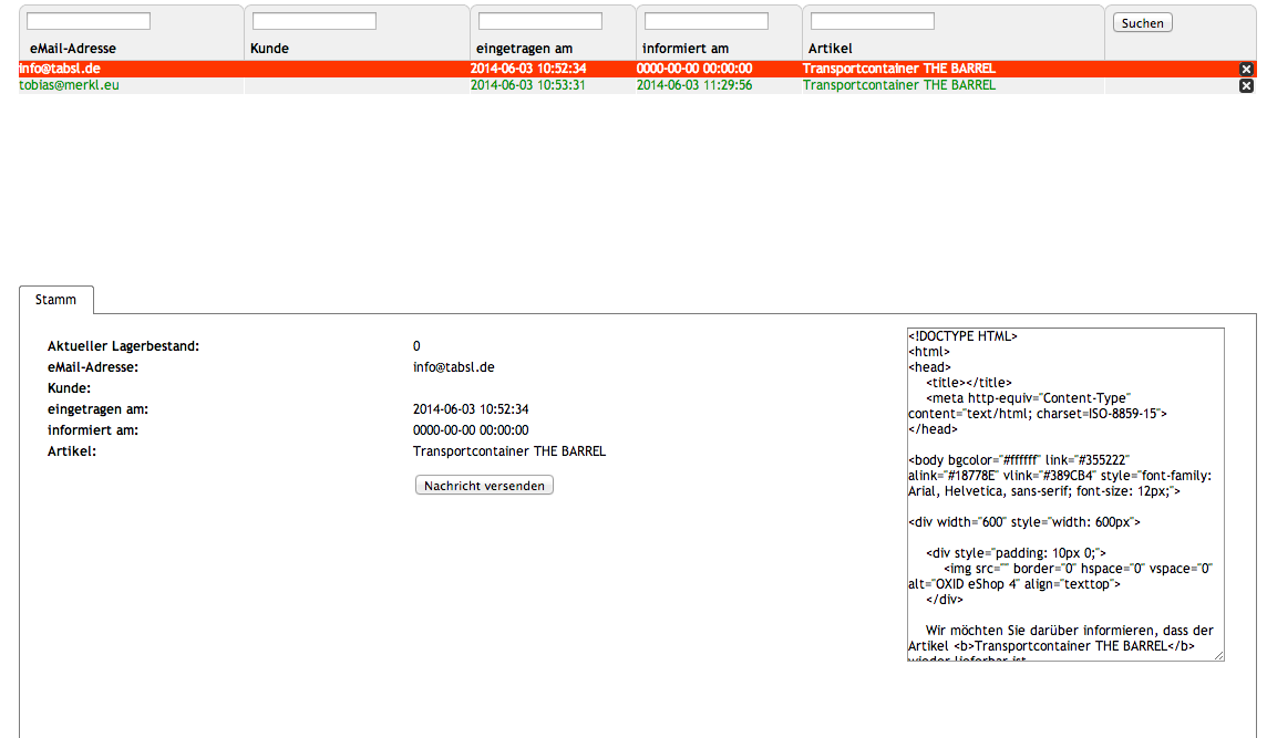 Notification tool if non-deliverable item is back in stock. Free module for OXID eshop 6.x