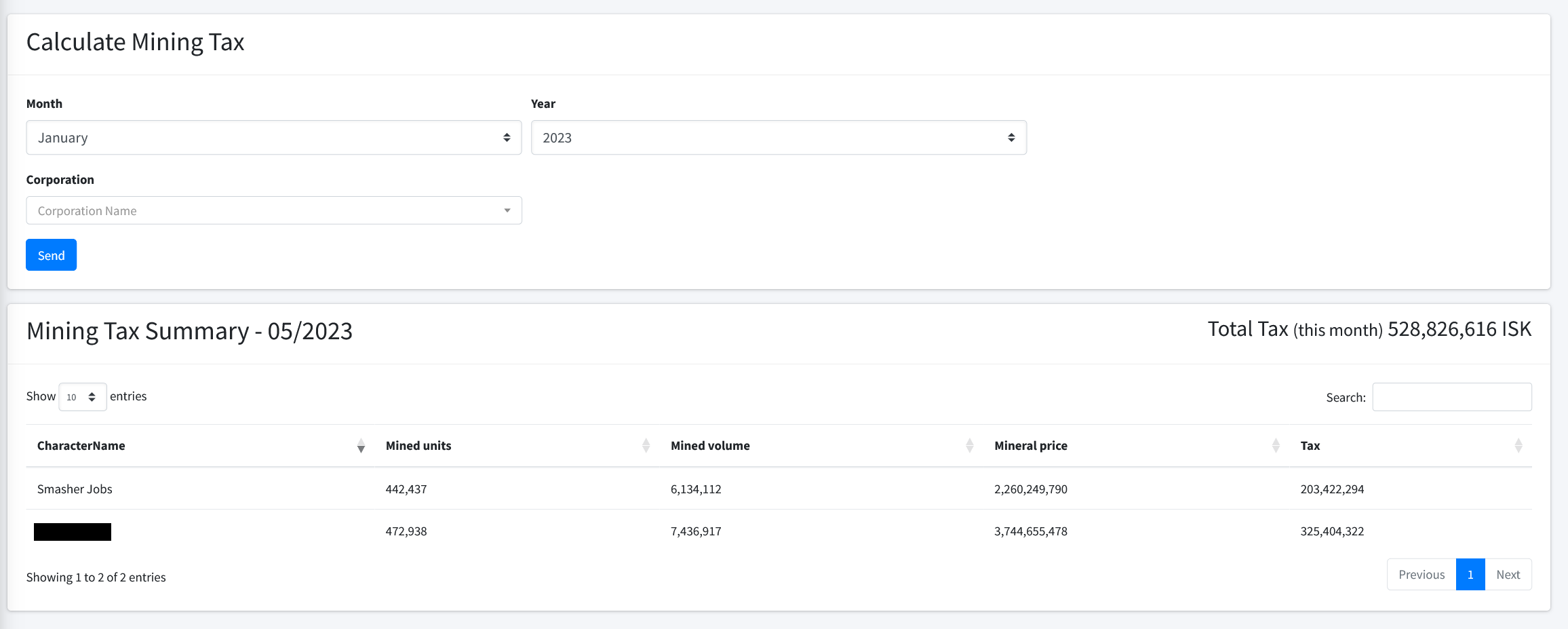 This plugin provides an extension to calculate mining taxes within the corporation. It simplifies the handling of taxes and gives an overview of mined ores of each member. Some additional features will very helpful to control the mining part, like Corporation Mining Events, Mining Statistics, Corporation Moon's Statistics,..