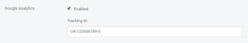 After you have a tracking ID, simply paste the ID into the Google Analytics section of site configuration, and check the "Enabled" box: