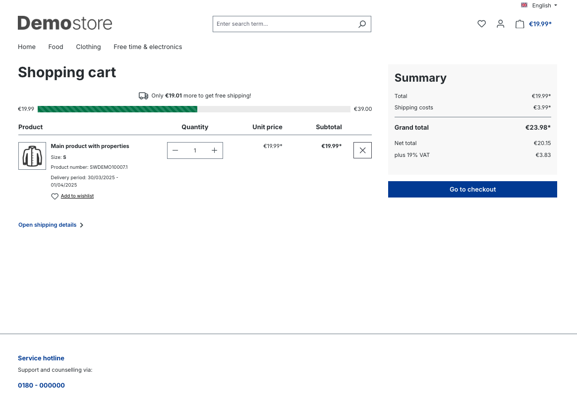 free shipping progress bar in the normal shopping cart with a free shipping product